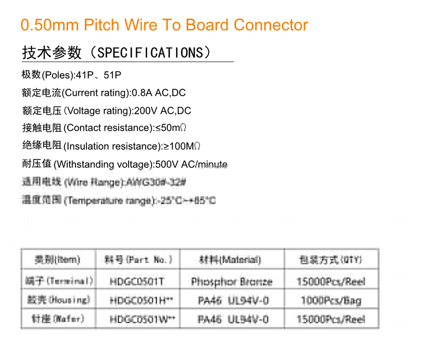 HDGC0501 Series 0.50mm Pitch (.020'')線對板連接器