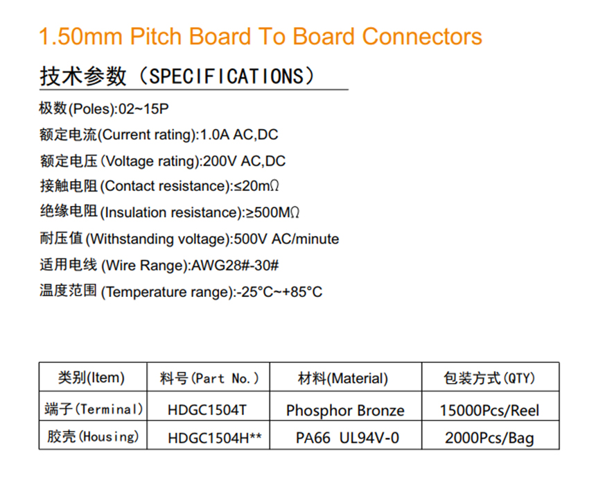 HDGC1504 Series 1.50mm Pitch (.059'')板對板連接器
