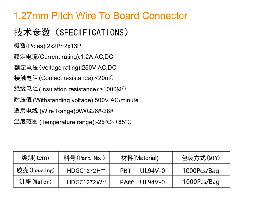 HDGC1272 Series -[1.27mm Pitch]刺破連接器