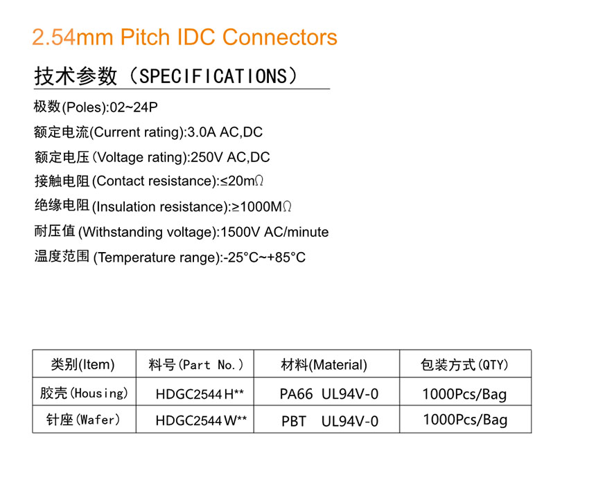 HDGC2544 Series 2.54mm Pitch (.100'')刺破連接器