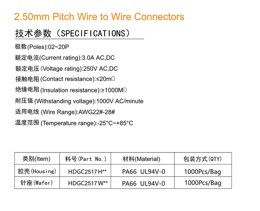 HDGC2517 Series 2.50mm Pitch (.098'')線對(duì)線連接器